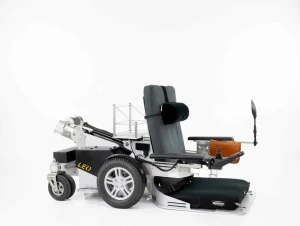 Der LEOlevel ist ein starker Rolli, vor allem sein speziell von uns entwickelter Liftarm. Bis zu 100 Kilogramm kann er mitsamt Sitzeinheit sanft und stufenlos aus dem Chassis heben und auf jede gewünschte Höhe bis zum Boden absenken.